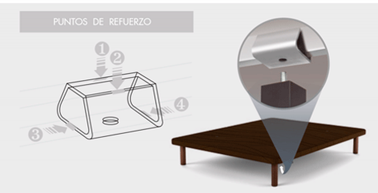 - Estructura metálica de 1.5 cm de grosor con acabados anti-corrosión.
