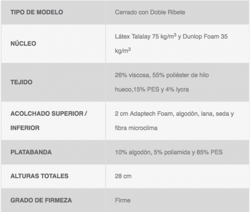 Colchón de látex talalay para un primer contacto adaptable y un nucleo de HR que ofrece firmeza y estabilidad.