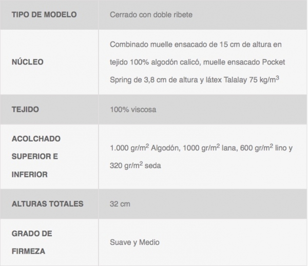 El doble ribete que rodea al colchón permite darle el toque de distinción, unido al tejido 100% de viscosa destinado a colchones de más alta gama.