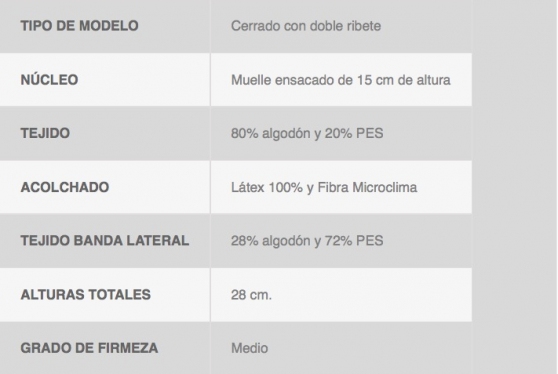 Por otra parte su núcleo de muelle ensacado dispuesto en forma de panal y de menor diámetro individual del muelle, permite disponer de mayor número de muelles que propician un núcleo de mayor firmeza con las máximas cualidades de durabilidad y adaptabilidad. Para favorecer la suavidad en superficie de este modelo acolchamos el tejido con látex ultraconfort que nos asegura la sensación de suavidad y recogimiento habitual en un colchón de látex.