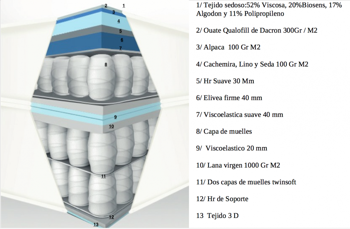 Le recomendamos que cambie su somier al mismo tiempo que su colchón. El colchón DIAMOND se recomienda con una base de muelles Sensoft con un acabado de altura 20 cm o una base de cama de altura 22 cm. + patas