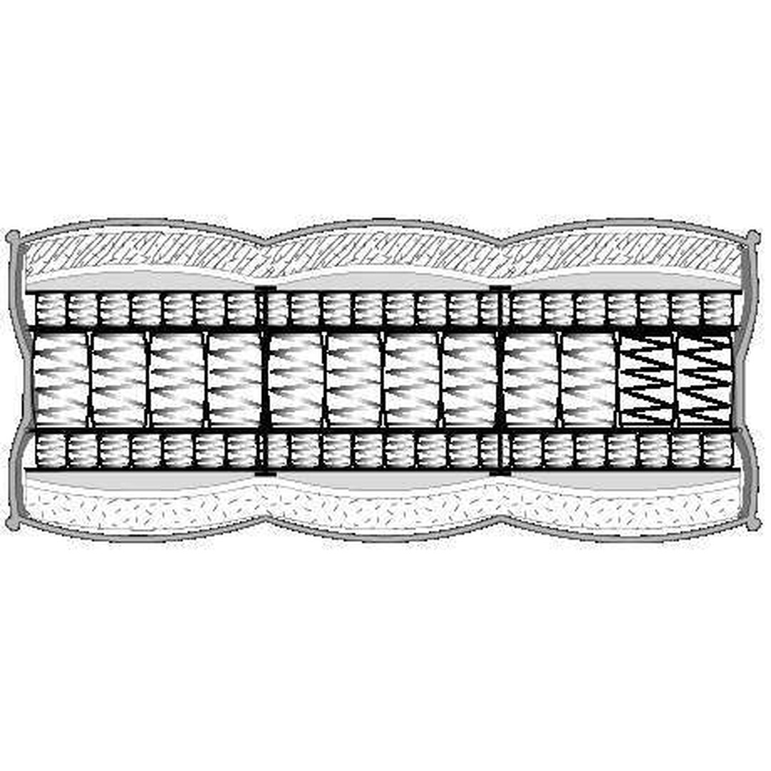 El colchón Paris - Vienne - Venise esta compuesto de una suspensión dotada de una capa de muelles pequeños por encima de la suspensión de muelles ensacados clásica, este sistema aumenta la cámara de aire interior y también su adaptabilidad,