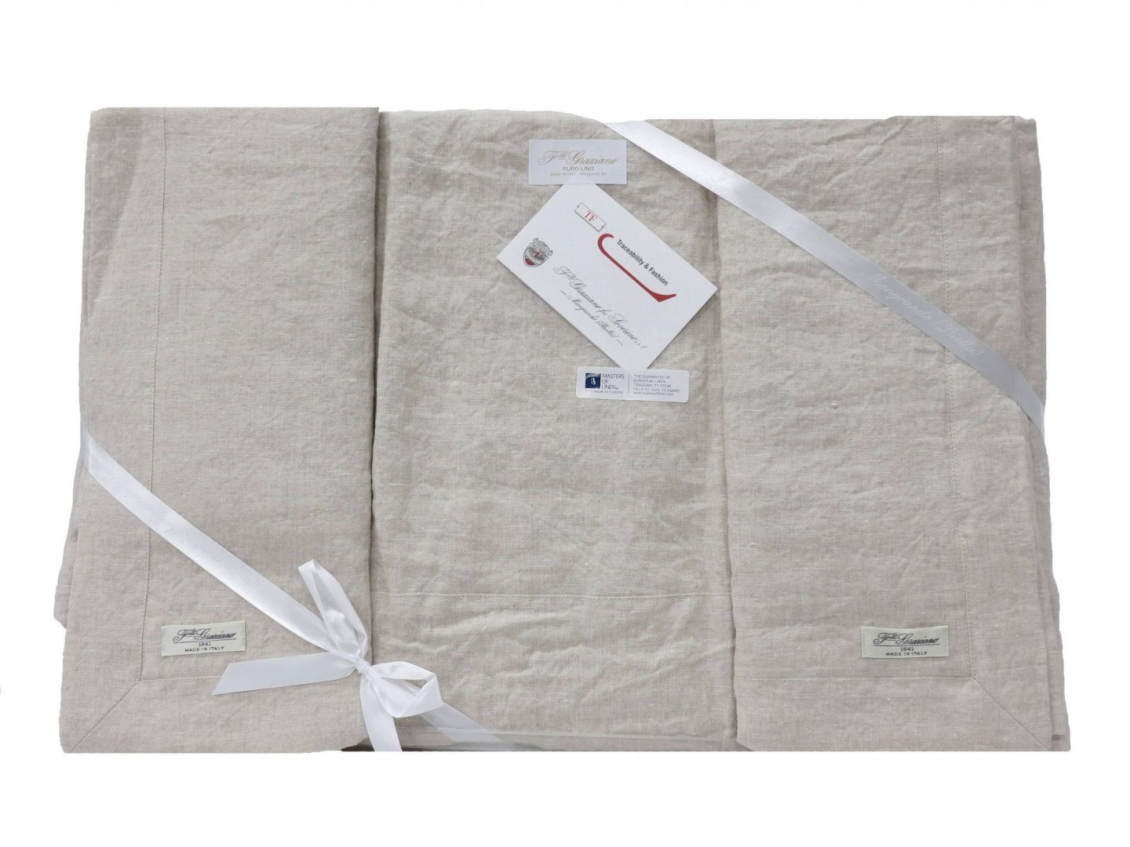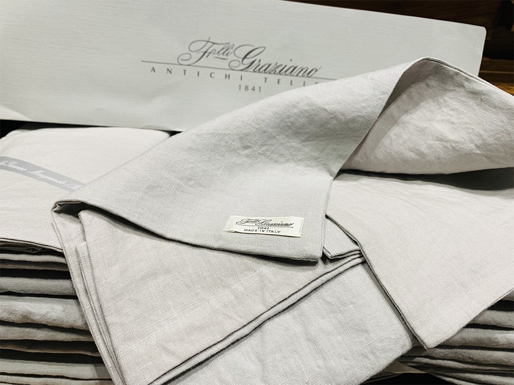 Líneas perfectas porque simples e inmediatas. Telas nobles porque intensas y preciosas. La ropa de la casa de F.lli Graziano "vive" en la relación sin el secreto entre la tradición y la modernidad. La tradición de quienes producen lino con pasión desde 1841 y la modernidad de una mano de obra refinada e impecable.
