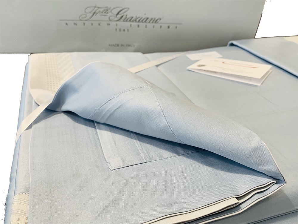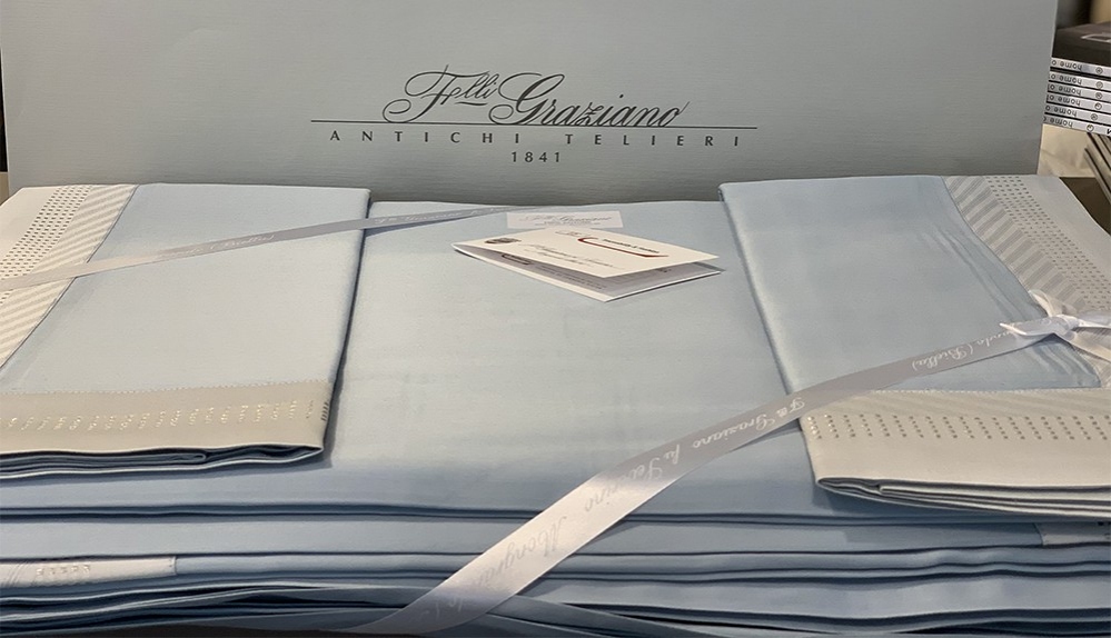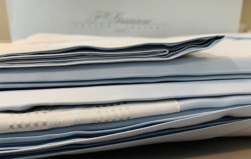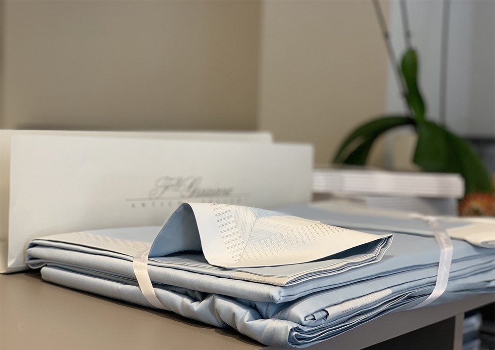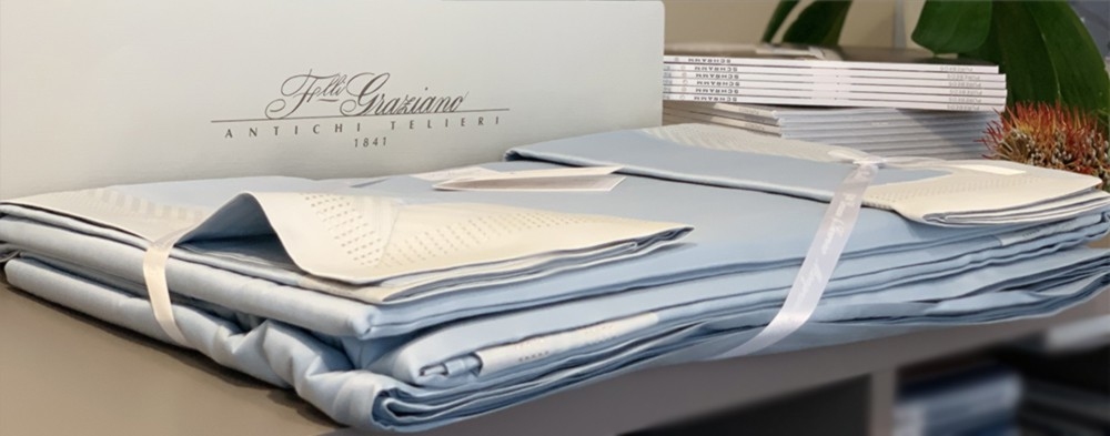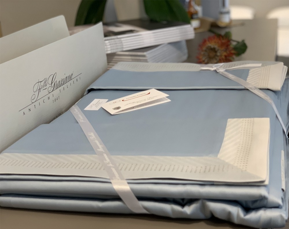 Un nuevo giro en telas jacquard de colores sólidos. Los métodos tradicionales se utilizan para tejer hábilmente los bordes que se añaden a un aspecto exquisito y tridimensional de la tela. Las últimas tendencias de moda se adentran en el hogar. Lurex, un hilo con un brillo metálico, se teje para crear elegantes sábanas de plata y oro blanco.